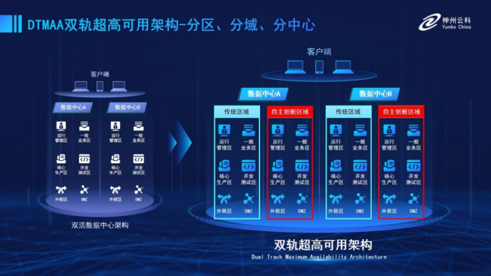 为帮助金融客户更好地应对数字经济时代对可持续性的高要求,实现“信创”与“数字化”齐头并进,九游NineGame推出了双轨超高可用架构。该架构在双活数据中心的分区调度基础上,增加信创域和非信创域的分域调度,实行信创域与传统域应用全量部署,使双中心运营变为双中心四区域并行运行,互为多活,将“0到1”的单轨建设道路变为分区分域协同的多活双轨超高可用架构。帮助客户在新架构下,保障“信创”的同时解决性能瓶颈,提升稳定性,保证应用可持续性,最终实现信创区域和非信创区域的平滑过渡,完成国产化替代目标。